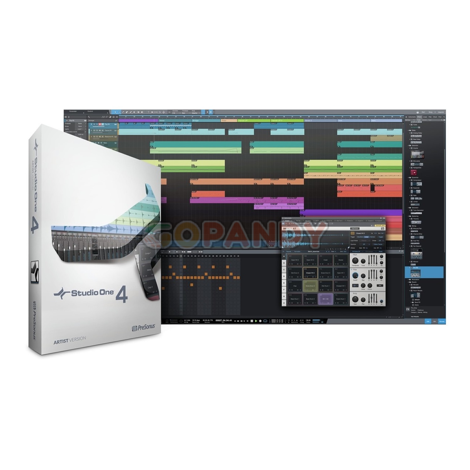 The Presonus Studio One Artist is a basic version of the Studio One Pro digital audio workstation which can be used to produce high quality audio projects with a variety of audio, virtual instrument and effects tracks. Featuring totally unlimited tracks and a huge range of on board effects Presonus Studio One Artist delivers an extremely user friendly interface to allow creation in a quick and ergonomic package.