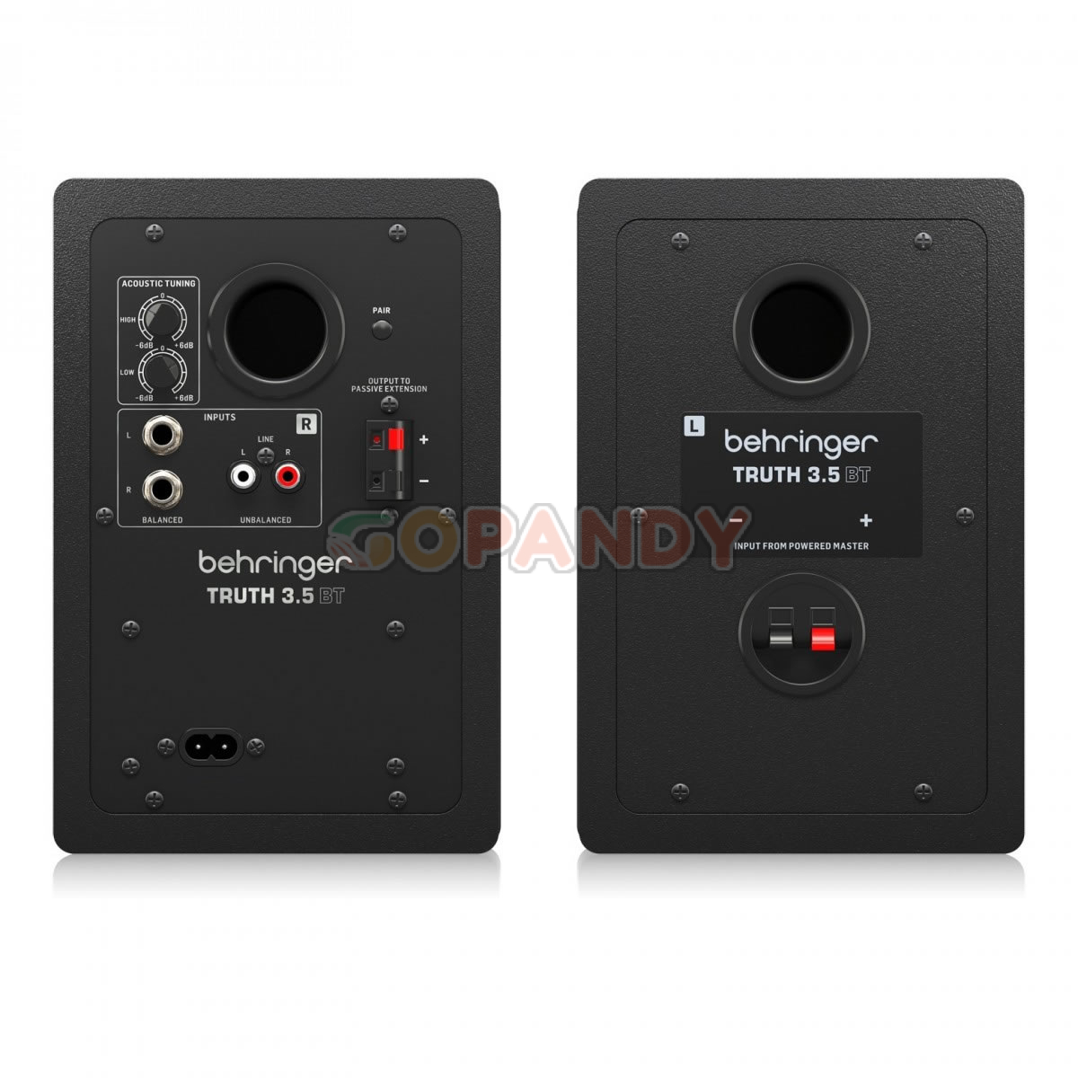 The Behringer TRUTH 3.5 are audiophile 3.5″ studio monitors, featuring advanced waveguide technology and Bluetooth 5.3 streaming. These 64-Watt ultra-linear reference-class monitors are part of the highly praised TRUTH series, making them perfect for demanding studios, home recordings, gaming, and multimedia workstations. The cutting-edge Waveguide technology ensures superior acoustic dispersion and an expansive “sweet zone,” while the exceptional 1″ silk dome tweeters provide unparalleled sound reproduction. The durable long-throw 4.5″ woofers are equipped with deformation-resistant glass fiber cones.