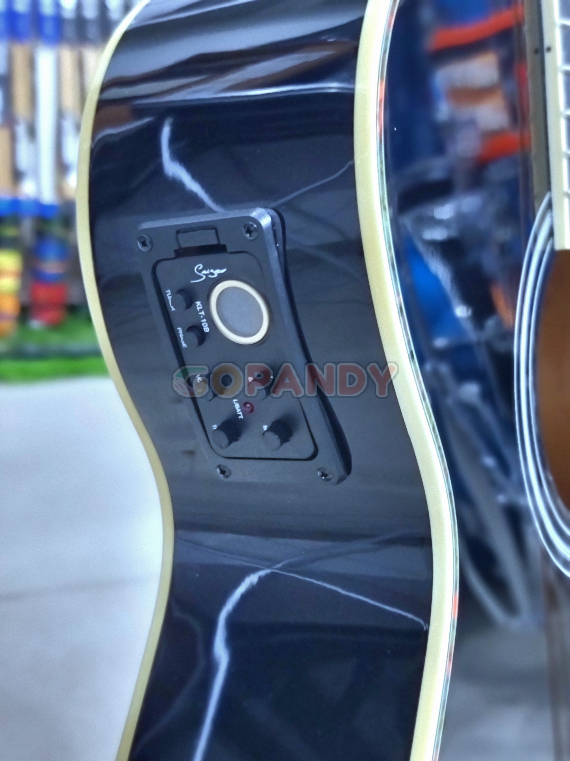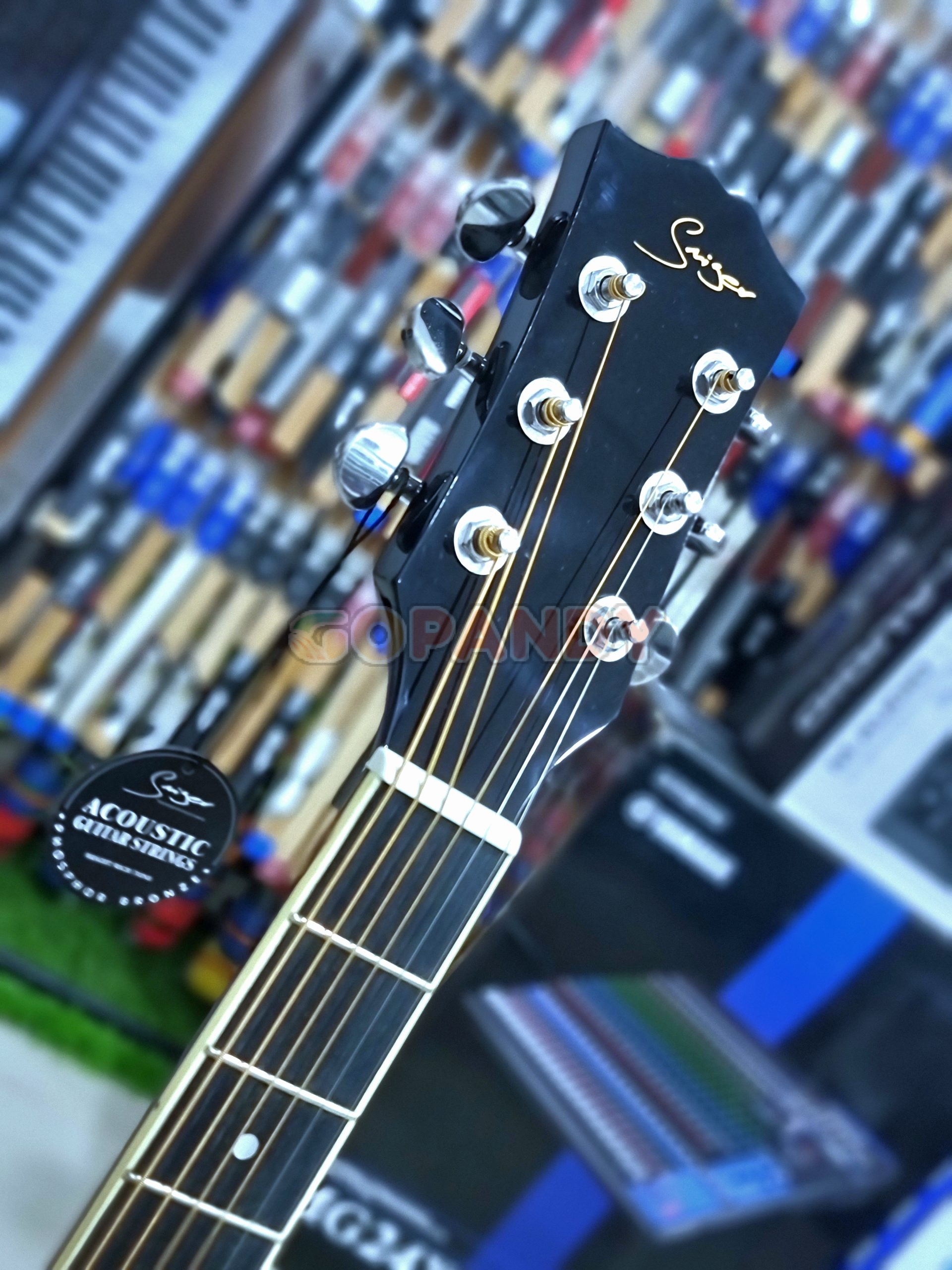The Smiger GA-H60 -BK electro-acoustic guitar generally features a spruce top, linden back and sides, a synthetic or technical wood fingerboard, a mahogany neck, and die-cast tuning machines, providing a bright and resonant sound for beginners or intermediate players. it also includes built-in tuner and equalizer, with a high-gloss finish